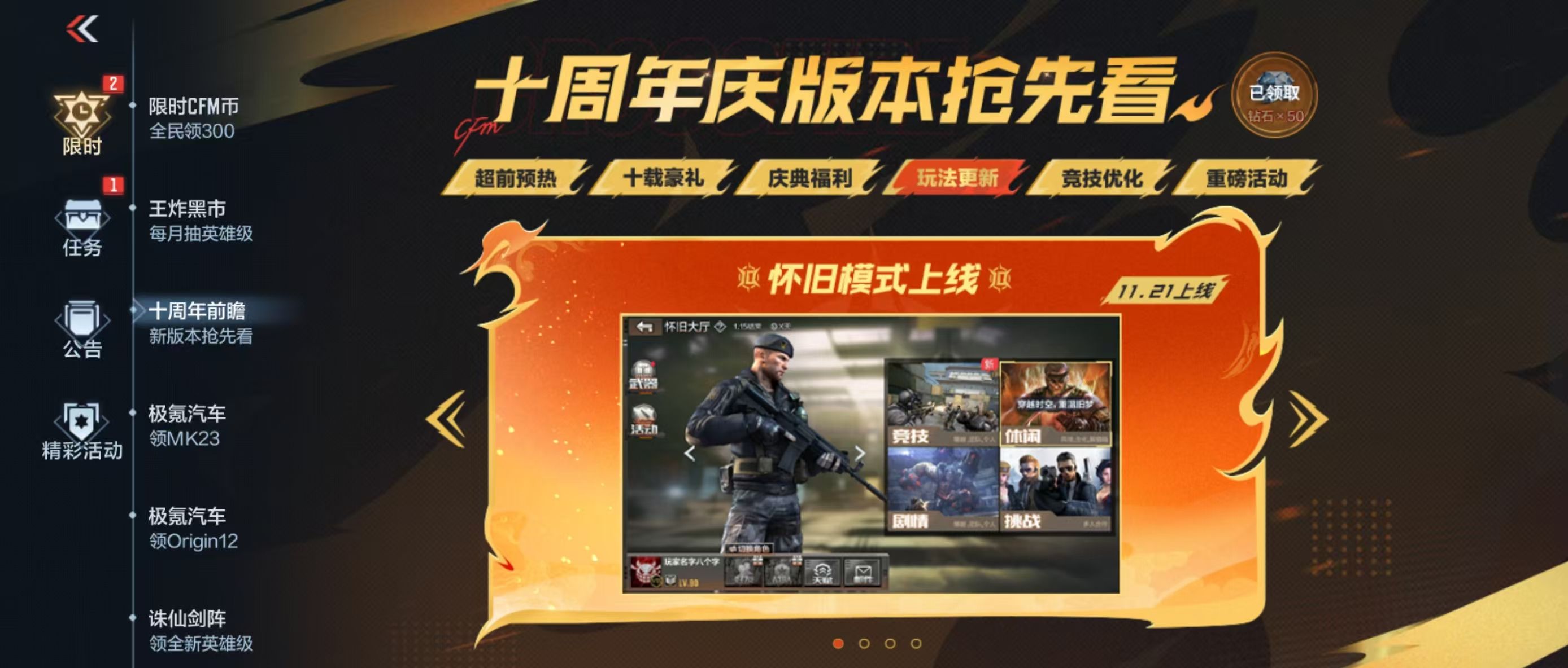 其实对于大部分玩家来说,他们在选择体验怀旧模式的时候,不仅仅有经典复刻的内容,而且还会引导越来越多的玩家他们去体验10周年的新内容,并且将10周年的庆典直接推向了高潮,而玩家在体验10周年庆典的时候,不仅能够获得福利,也能够感受到cf手游的成长跟变化。