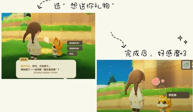 在星湾中可以查看友邻对礼物的,偏好,赠送友邻喜爱和好感的礼物会额外增加亲密度