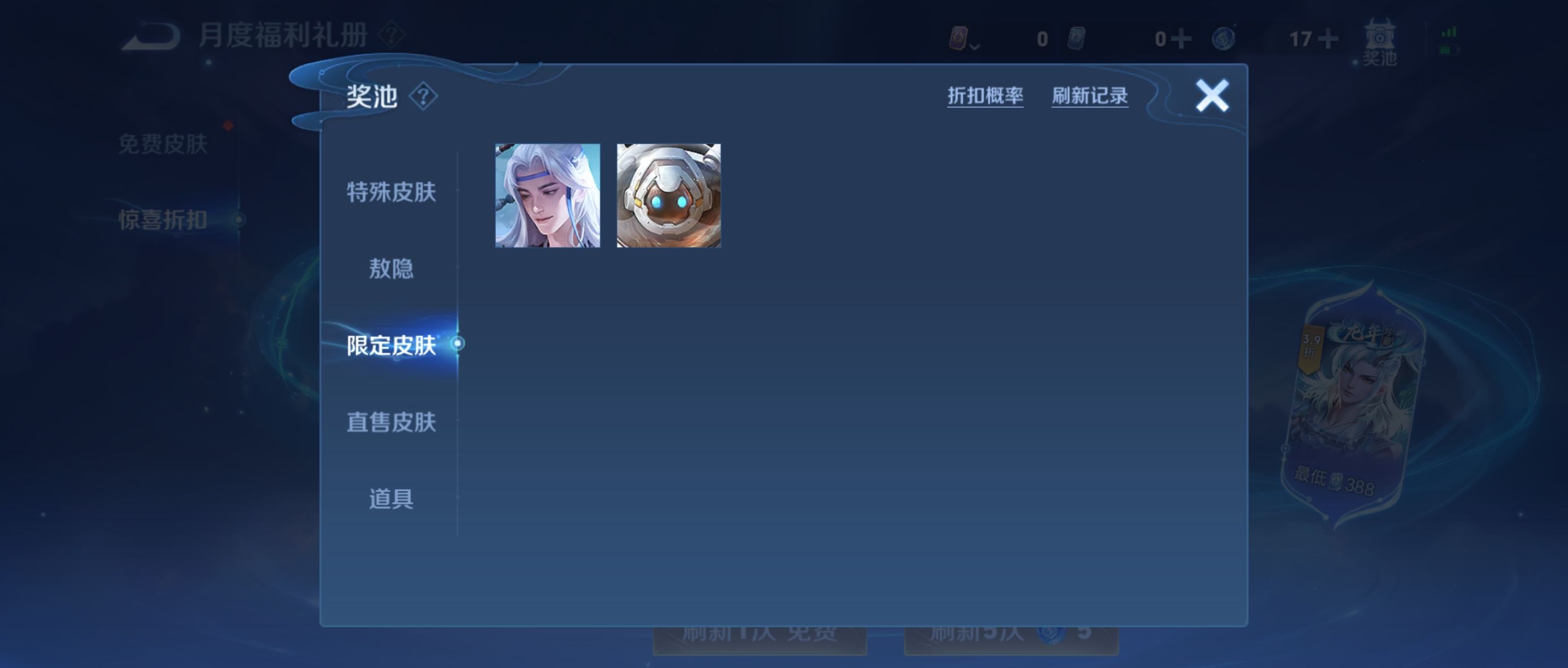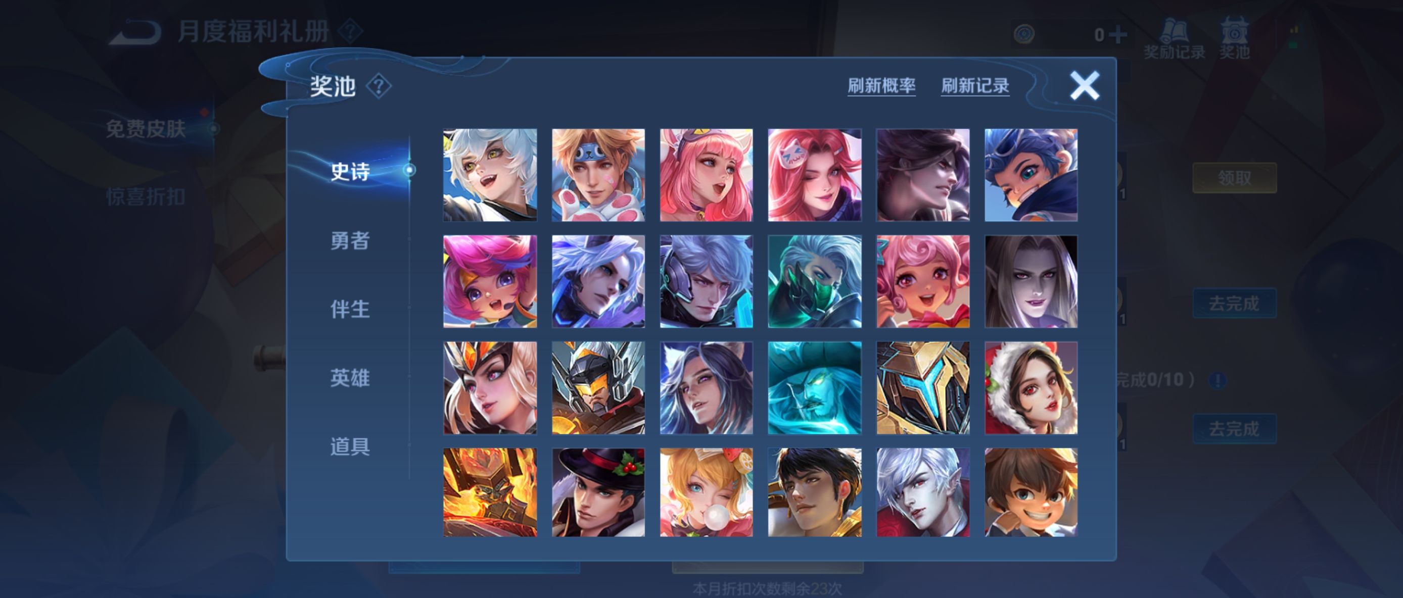保底机制对玩家来说还是很实在的,累计刷新120次就可以获取之前没有拥有的史诗级别皮肤。福利还是比较实在的。另外,如果刷到已经拥有的勇者皮肤,也并不需要觉得可惜,系统就会自动的替换成4张积分夺宝抵用券,可以积少成多。说不定用抵用券就能有机会拿到荣耀水晶。这里也有一个时间点需要记住,10月份的活动在10月31日已经正式的关闭。刷新的次数虽然可以跨越继承,但是货币不能够保留。