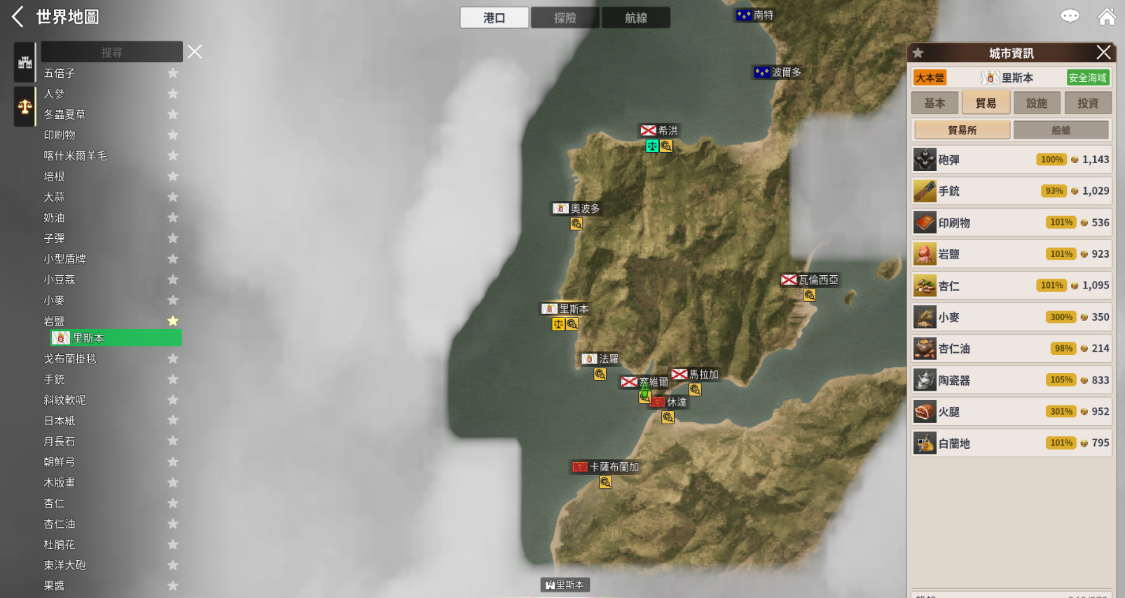 交易任务5的主要目的就是买卖某种货物,有时还要跨地区运输。任务虽然简单,但是真正开始操作后就会发现商品是否有利润、港口库存是否充足、途中是否会遇到灾害等都会导致结果的偏差。玩家在获得任务后首先要查清目标商品的产地,然后同周围港口的交易价格进行对比。目标港口离得太远的话,应该配用提高航速或者减少疲劳的配件来节约时间。
