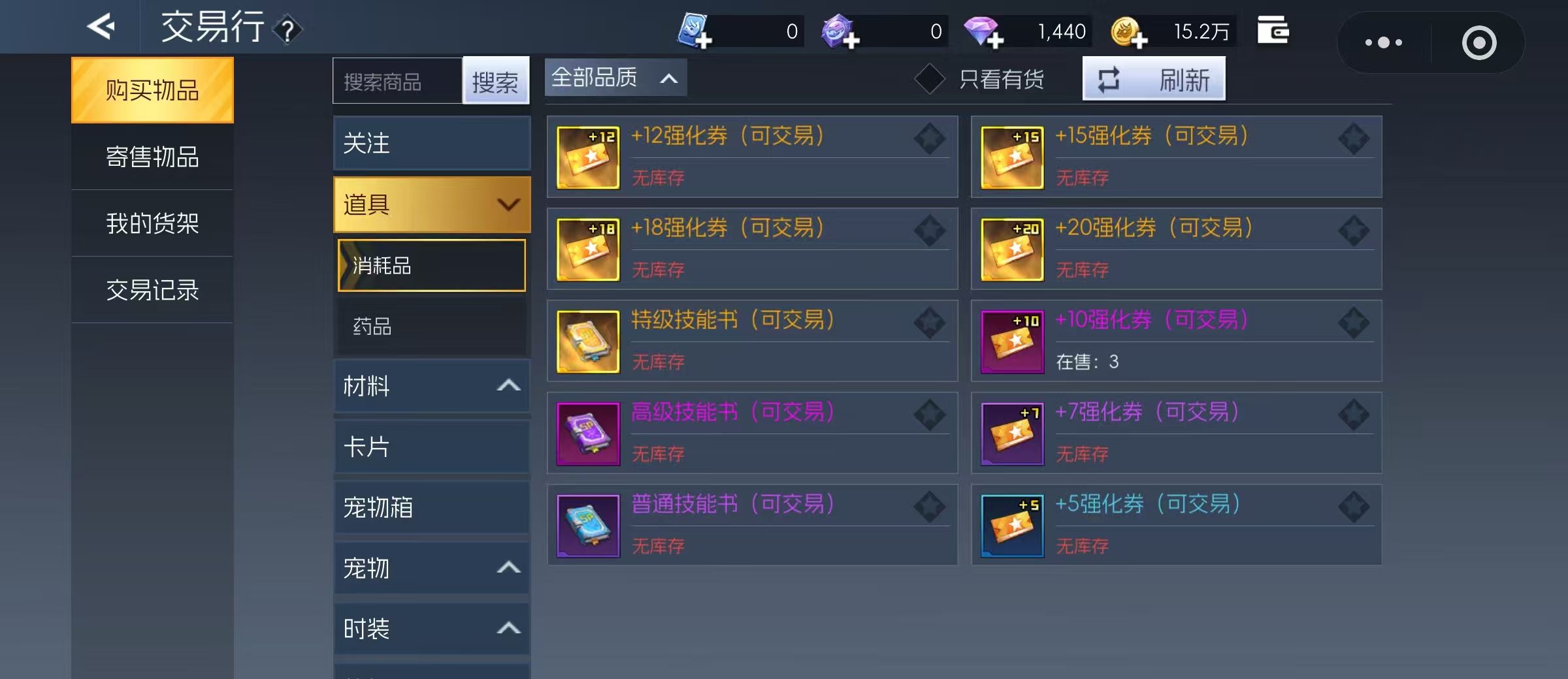 在街机恐龙的交易行中,玩家可通过出售闲置道具换取龙牙币,也可用龙牙币购买他人上架的所需物品。整个系统主要分为两大功能:购买和寄售。首先来看购买流程。进入交易行后选择“购买物品”,即可浏览当前所有待售商品。支持通过关键词精准搜索,也支持按类别筛选,如道具、材料、卡片、宠物箱等分类一目了然。选定目标物品后点击查看详情,可看到市场参考价及卖家标价,输入购买数量并确认后即可完成交易。