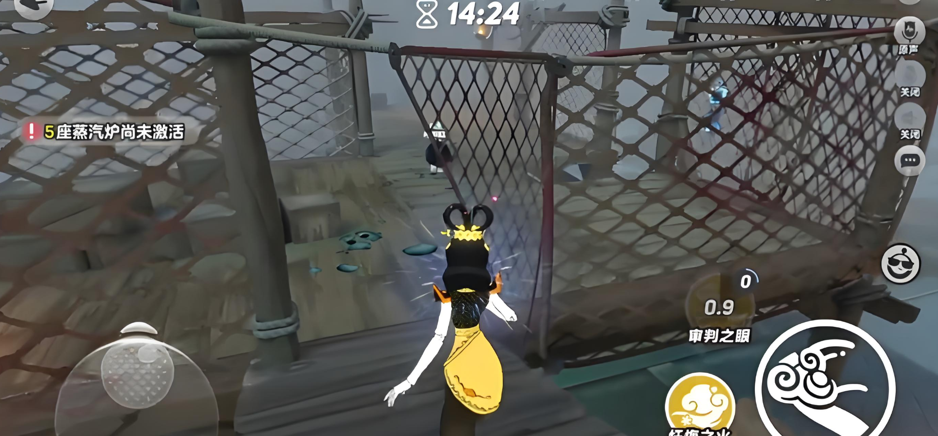 玩法相对还是比较简单的,核心就是放眼点火,还有金身反制,并不需要去死磕所有的逃生者只需要抓住节奏。在开局之后就可以直接跑到热门点位去找人,例如在喷泉广场边上就可以从废墟在煤仓角落可以朝着中间跑。在对战的过程中,尽可能选择机动性并不是很强的角色,例如舞女或者是矿工,不要在高台上浪费太多的时间。在遇到目标之后就可以先放技能眼,然后远程直接引爆叠一层火,再通过预判走位的方法就可以不掉层轻松就可以拿下一血。