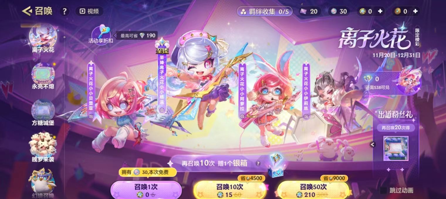 方糖城堡作为英雄级的棋盘,想要获取,那就需要看个人的运气。在幸运召唤中初始的概率是1%,实际测试下来,大部分的玩家在300多左右就可以保底出货并不算特别的坑。在这一次幸福召唤池中还会同步上线焦糖厨房,如果喜欢温馨风格的玩家也可以选择,但个人建议优先选择方糖城堡。毕竟阶段切换的独特设计,在后续的环节中,是不大可能会复刻的。这里也有一个小秘密要透露,建议积攒足够的召唤券之后,然后直接选择10连抽。相对而言,成功的几率就会更高一些。