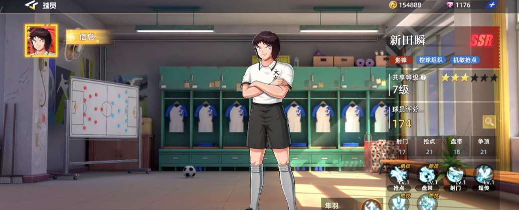 给大家介绍的最后一个球员就是新田瞬,新田瞬目前在游戏当中,其实如果大家重点关注的话,就会知道他自身作为影锋定位的球员,在同类品质里面他不仅定位特殊,能够达到的控球效果也非常强势,通过这部分能力,他带来的解析抢点都是可以快速使用出来的,而且在抢点当中,他能够给对面造成额外的脱手率,此类效果如果触发的话,他在进行抢点的时候,给大家前期带来的得分优势也是有不错的进球效果,那么利用盘带技能的效果是他能够快速的抢过我方的球权,在对手禁区之内进行盘带的话,就可以带来自身的属性增加数值,后期进行射门的话,虽然数值比较一般,但是他也是有比较常见的招式加成了。