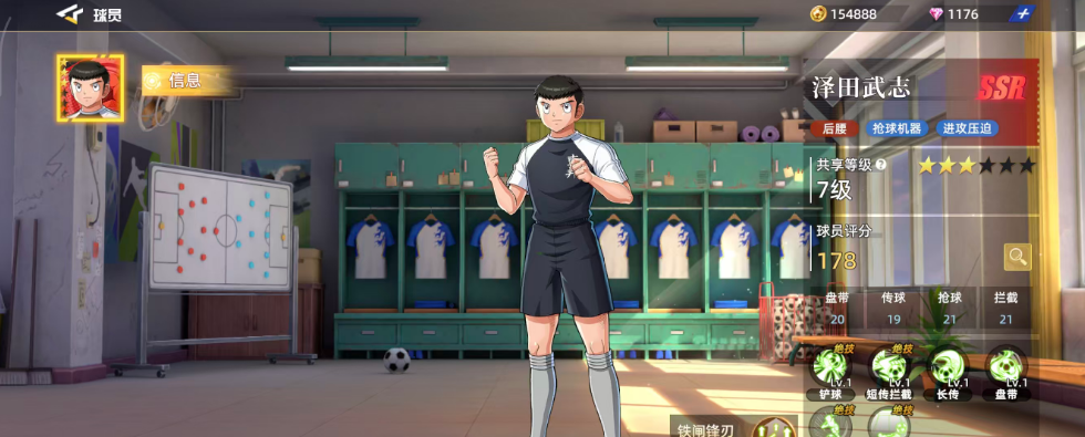 如果大家还想要使用全能效果比较强势的角色,大家可以使用的就是泽田武志,泽田武志作为目前游戏当中的后腰定位角色,他的抢球技能效果能够达到的评分也是不错的,而且自身的强力铲球动作也可以带来威力不错的铲球技能效果,目前他能够达到的球场技能使用区域基本都在中间区域部分,所以在球场的统治力上面基本是靠他的各种技能来进行使用的,使用铲球的动作是他能够带来的数值,都是基础上用各种属性来进行提升的,而且进行拦截的时候,也有自身同类属性当中能够额外进行叠加的数值效果,所以用泽田武志来进行拦截的话,目前在中场进行拦截带来的整体阵容效果会更强势一些,后期根据他的状态也能够给自身带来更多的威力叠加能力,使用这个球员能够造成的攻势数值还是比较高的。