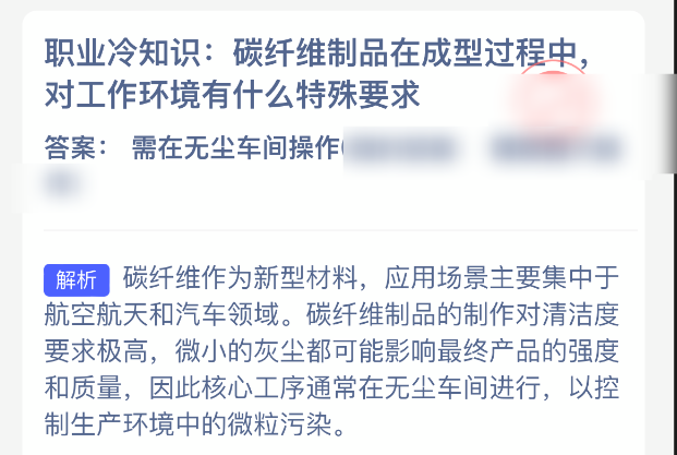 以上就是职业冷知识:碳纤维制品在成型过程中,对工作环境有什么特殊要求?支付宝蚂蚁新村最新答案2025年11月27日,更多精彩内容,请点击关注更新!