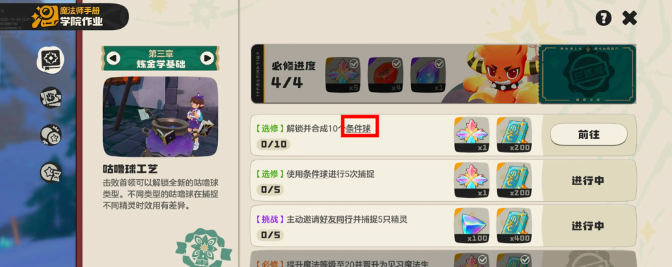 洛克王国世界条件球怎么获取?由洛克王国经典IP来打造的《洛克王国:世界》已经开启了多次内测,让很多小洛克们对这款游戏充满期待,而其中有关洛克王国世界条件球的制作,却困扰了不少试玩的小洛克,在炼金学基础的第三章,玩家需要学会咕噜球工艺解锁并合成10个条件球,即使条件就是游戏当中16种不同作用的咕噜球总称,如果要想成功攻略这一选修要求拿到丰富奖励,快跟着小编看看本期的攻略内容吧。