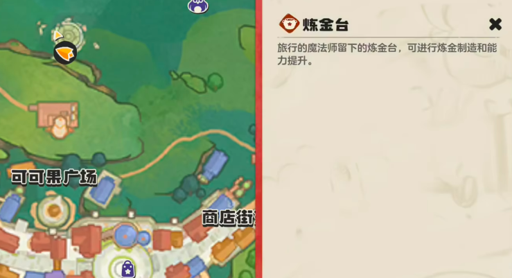 其实像这种条件球,往往需要玩家前往炼金台进行合成,而咕噜球是捕捉工具,有普通、元素、高级和特殊类别之分,玩家抵达地图附近的炼金台后,(可可广场附近的炼金台是比较多的,炼金台的标志就是小编箭头所在位置,找到这样的标志都可以进行传送),玩家可通过炼金台进行免费的咕噜球合成,但需消耗矿石和体力进行制作。