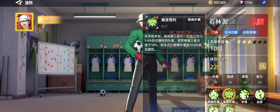 若林源三在游戏中是一位门将球员,这个定位的球员现在在红卡当中可是很难找的,所以他自然在门将能够带来的效果上面有不错的后防屏障效果,而且利用这个球员的技能大家也可以进行一些空中拦截的动作,在球员评分达到220的基础上面,大家就可以判断他的强度目前是处于比较受欢迎的程度,基础的属性效果当中抱球26、体质26,耐力23,补救26的分值都代表了可以用这些动作带来球员优势,而且在自身的六维图当中他的所有数值都超过20,目前所有属性当中基本没有低于20分以下的,所以他绝对是非常热门的一个门将选手。
