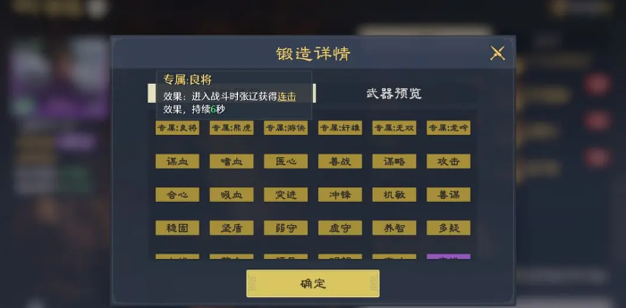 其中部分的橙装会有一些专武类型的效果,跟固定武将之间的技能搭配效果很匹配,这里在打造的装备大家是可以根据想要的武器或者是防具分类来进行分开打造的,而大家想要打造更多装备的话就可以通过褒奖令来进行兑换,这个道具是大家可以通过商贾玩法来熟悉的,在其中通过完成既定的交易任务来获取褒奖令兑换各类基础的装备材料,要先装备品质更好一些,这里建议大家拿的最好是高级打造材料,此外还有一个云游系统也跟大家要打造装备有关。