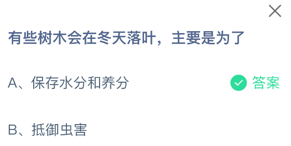 以上就是有些树木会在冬天落叶,主要是为了,支付宝蚂蚁庄园2025年12月4日答案最新,更多精彩内容,请点击关注更新!