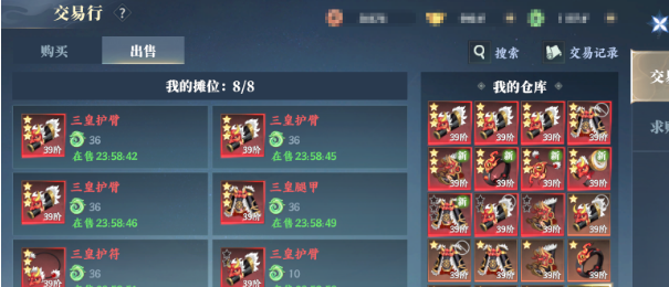 进入交易行的方法很简单,玩家只需要点击交易按钮,就可以进入到核心的交易区域。这里也会分成核心的板块,可以满足不同的交易需求。玩家想要直接入手所需的物品,在购买页面就有清晰的划分。从39阶神装,然后到前缀的材料,全部都能够找到。如果目标明确,就可以选择右上角的搜索功能,具备精准的定位,根本就不需要在商品中慢慢的去挑选。同时交易记录还会完整的留存近期购买的轨迹,方便查询过往的交易明细,可以避免重复消费。