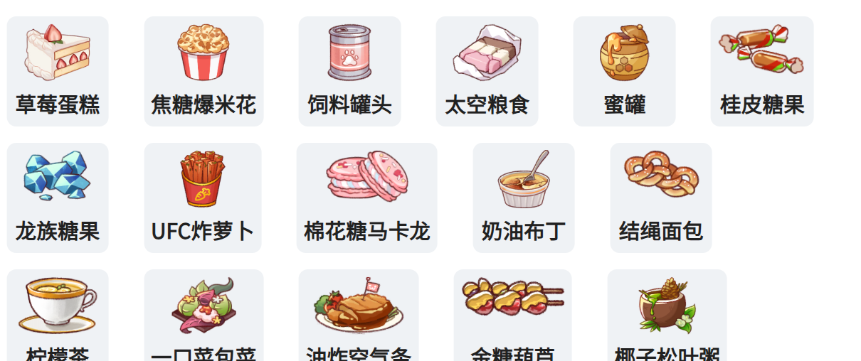 以上就是小编整理带来的嘟嘟脸恶作剧角色食品一览,更多相关游戏攻略,请关注!