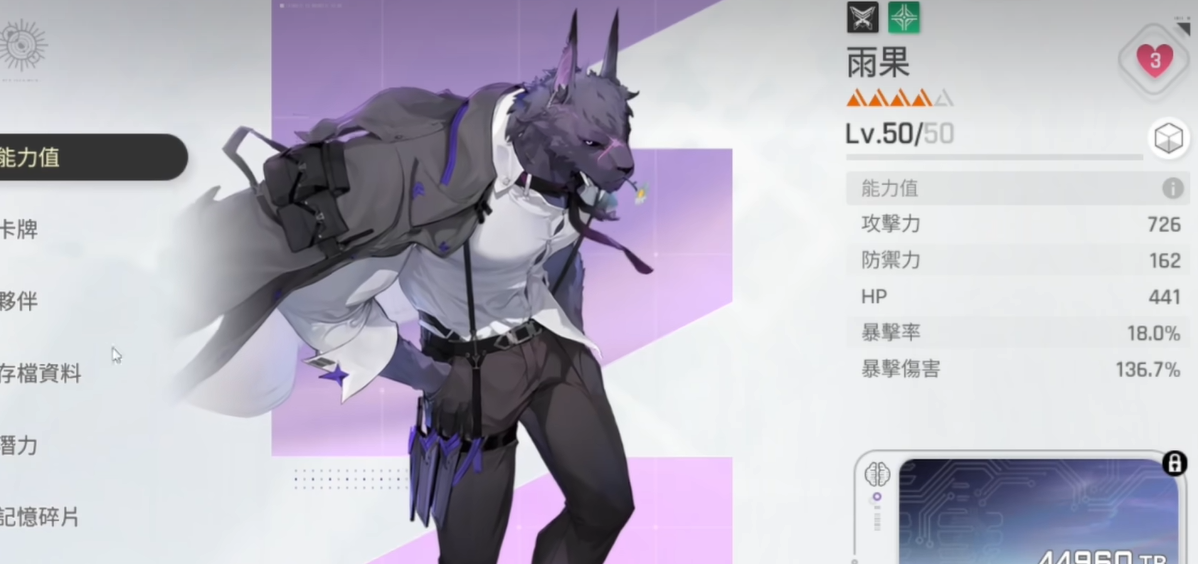 狼哥的造型设计非常炫酷,有着狼的头部,人的身体,服装的设计上也是很男性化的。选择狼哥作为主要的攻击角色,可以和梅玲或者是维若妮卡组建成一支具有高攻击性和输出性的队伍。梅玲在配对时可以辅助狼哥增加更多的伤害值,核心被动技能是余烬,当怪物处于余烬状态时将会以30%的伤害增加效果按照余烬数量对他们实施攻击。每一次发动技能时将会进行叠加,累积到5层时给怪物造成的伤害将会提升至更高的级别。维诺妮卡属于拥有热情属性的游侠,在输出的模式上也是相当独特的,配合狼哥能够打造出更加独一无二的作战风格。