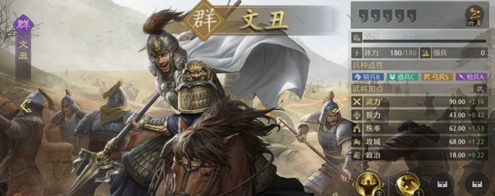 那么接下来为大家介绍的就是文丑这个武将,文丑在游戏当中其实作为一个输出型武将的话,前期大家可能用的比较多,他在使用自身技能的时候,可以对目标带来增长50%的效果,这样一个增伤效果基本上是大部分阵容里面武将都可以配合好,而且他在升级到二星之后还可以解锁自己的血怒,这个技能的话,可以让他得到一定兵力降低之后武力提升的效果,配合了其他控制类型武将的话,他就可以增加更多的负面状态了,所以对于扩散目标带来一些增长之后还,可以实现足够快的清理效率。