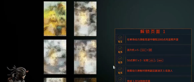 第1个任务是单场动力滑板竞赛,赚取2000点声望,先切出小米兰,选用动力滑板启动器,打开地图之后,随便标记一个图标,切换翅膀飞过去即可。每一个紫色图标的位置全部都会有一个负责滑板竞赛的阿布,跟他互动之后就可以开始比赛。左侧会提示需要穿过的门数量,还有时间限制,每穿过一个门就会增加时间,只要用方向键还有跳跃,控制好滑板,别错过这一个门就可以拿到2000个声望。第2个任务就是完成5次直升机动作,所谓的直升机就是滑板特技。重点是连贯的操作,中间不要松开,练习几次之后就会熟练。