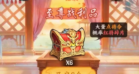 5)收集至尊战利品。必得点将令,概率获得10倍点将令,以及概率获得红将碎片,非常不错的战利品。