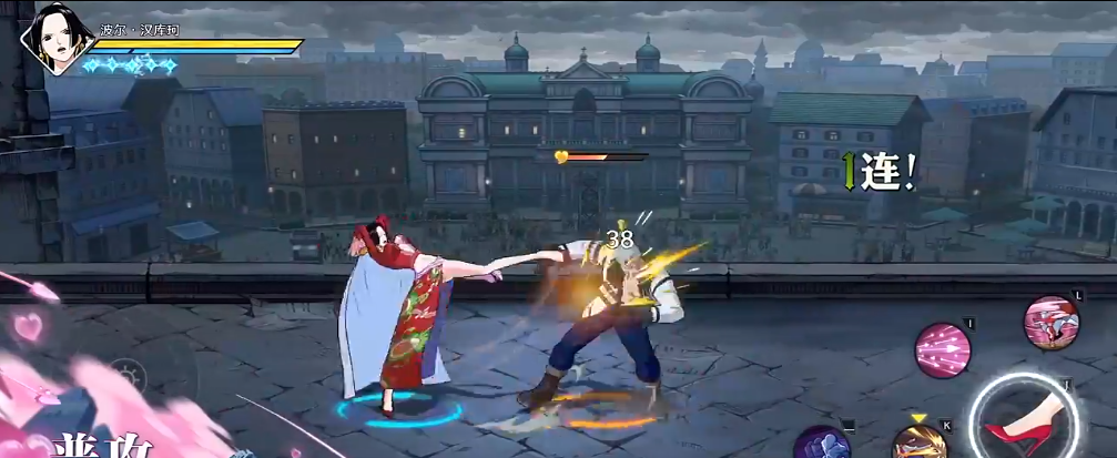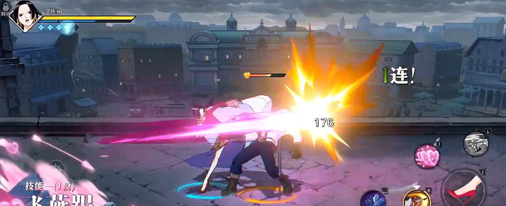 一技能名为“飞燕踢”,支持点按与长按两种释放模式。点按时分为三段:首段为直线飞踹,二段为斜上方向旋转踢击,三段为空中高弹腿下劈,具备抓取判定;长按则激活果实能力融合机制,消耗额外精力值,全面提升各段攻击性能。