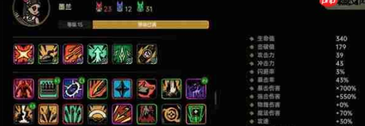 核心技能选择【核爆弹】,整体 build 围绕暴击率、暴击伤害以及核爆相关特效进行构建。