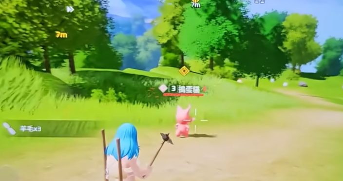 游戏开局后,优先制作基础工具——石斧。该武器是前期探索与战斗的核心装备,制作完成后即可沿主干道向地图东部推进。系统引导会明确提示首个目标位置,步行约两分钟即可在开阔道路旁发现等级为3的捣蛋猫。靠近至有效距离时,屏幕将自动弹出锁定提示框;跳过对话动画后,直接使用普通攻击触发遭遇战。因其为初始野生帕鲁,血量较低,仅需2–3次石斧普攻即可使其进入虚弱状态,随后点击“收服”按钮完成捕捉。