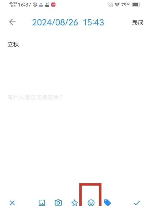 极简日记app怎么在日记添加心情,打开极简日记App首页,点击【日记内容】,在日记详情页面,点击【心情图标】,在心情列表中,选择心情。点击【完成】,即可添加心情。