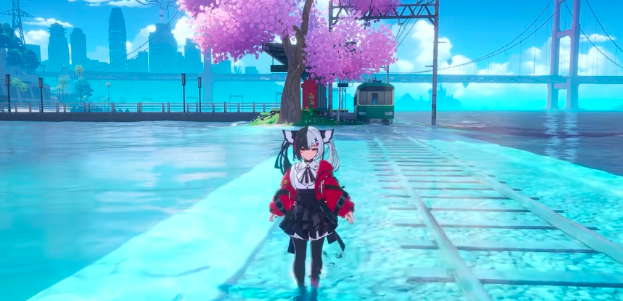 在水面列车周围有很多樱花树,流畅的车身设计、波光粼粼的水面、飘落的樱花为玩家们带来别样的浪漫体验,玩家要想乘坐,可以在地图上的列车标志附近进行传送,可以直接抵达列车的各个站点,而水面列车也成为了不少玩家们的拍照打卡圣地。