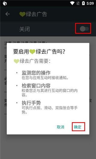 5、开启去广告,会显示需要开启的内容,直接点击确定