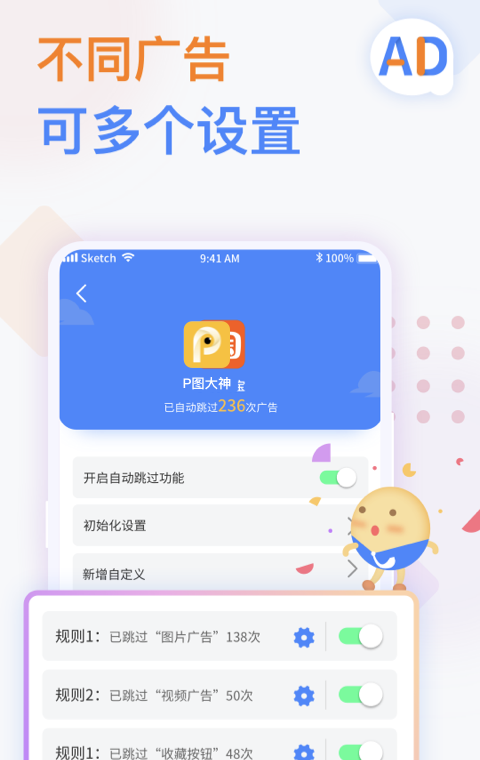 4、个性化广告拦截设置:提供自定义设置和管理功能,用户可根据需求选择屏蔽广告类型、开启或关闭白名单等。