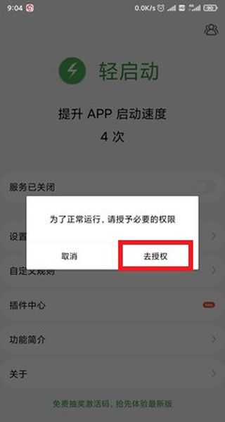 1、点击服务开启按钮,就会弹出方框然后点击去授权。