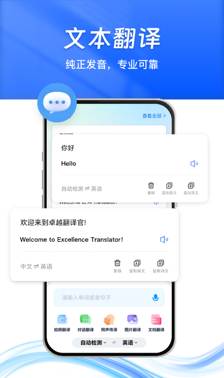 卓越翻译官作为一款专业性与易用性兼备的翻译软件,凭借其丰富多样的功能,成为了众多用户在语言交流领域的得力助手。该软件集成了文本翻译、文档翻译以及语音翻译等众多强大且实用的翻译工具,这些工具各具特色,能满足不同场景下的翻译需求。无论何时何地,用户都能轻松上手操作这些翻译工具,对各类语言进行精准无误的翻译。无论是日常的简单对话,还是专业的学术资料,卓越翻译官APP都能迅速给出准确的翻译结果,让用户解决各种翻译问题变得轻松简单。