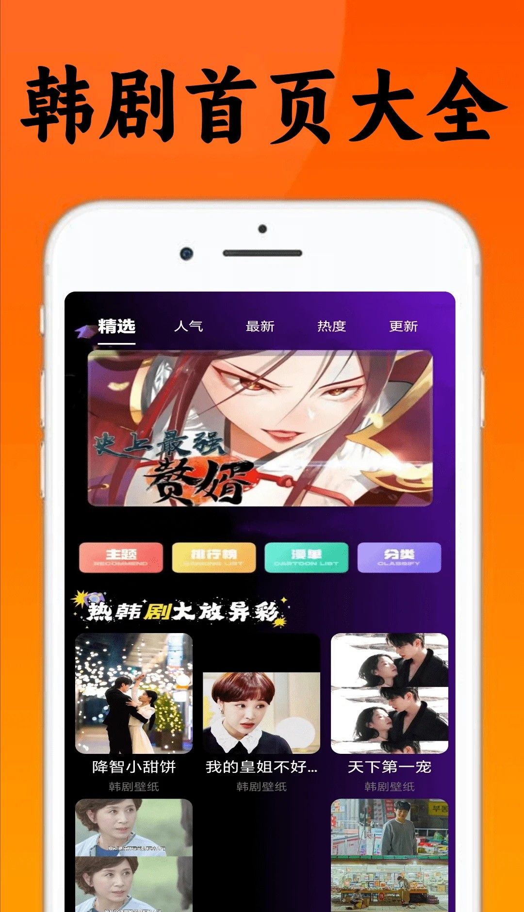 追韩剧题是一款受欢迎的免费韩剧软件,为用户收藏了各种热门韩剧资源,可以轻松选择高人气且受欢迎的韩剧来看,随时随地免费看剧观影,还提供多样化的韩剧主题库,自由呈现各种精品的韩剧,方便用户在线播放感兴趣的电影,能完全满足用户所有追剧需求,还拥有智能搜索方式,可以直接输入韩剧名称来搜索查找,轻松关注各种韩剧的更新,灵活点播最新的韩剧剧集和内容,给用户带来全面的追剧服务,有兴趣的用户欢迎下载。
