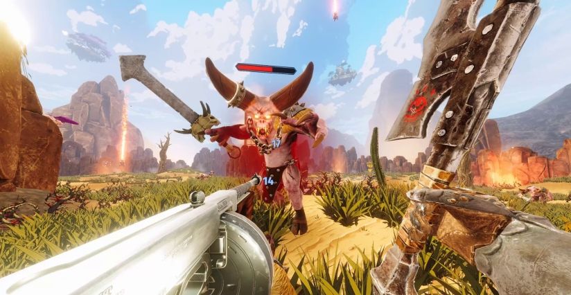 你扮演艾瑞克斯,一名无畏的狐狸战士,他与他的超音速乌龟坐骑以及背着喷气背包的小但睿智的熊布莱恩并肩作战。英雄三人组共同迎战整个恶魔战争机器。
