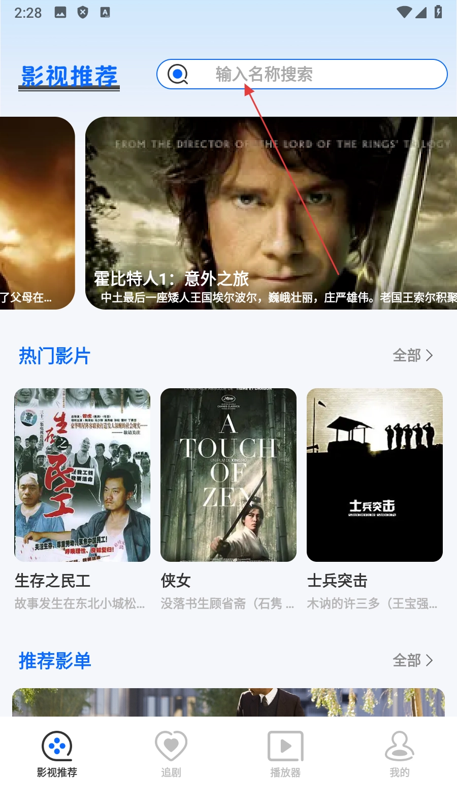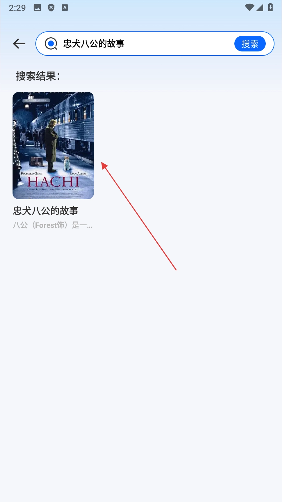 2、在搜索页面上输入电影名称后,单击搜索按钮以获取相关搜索结果。