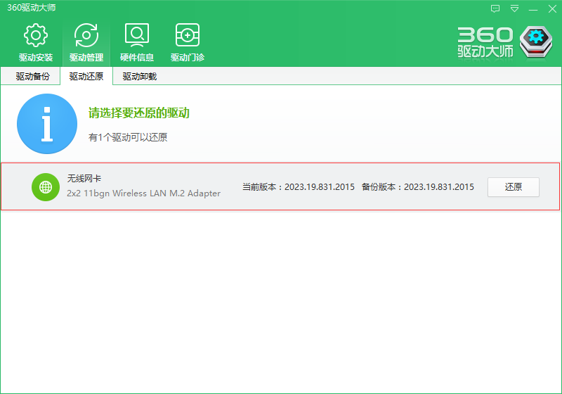 1.4、备份完毕,在驱动还原页确认驱动已经完成备份