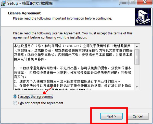 2、点击“I accept the agreement”同意安装协议,点击“next”继续安装