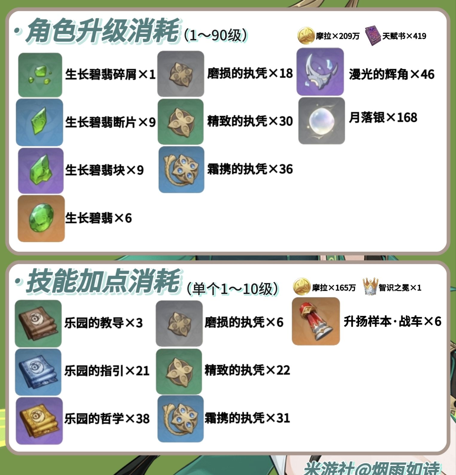 原神月之六版本卡池奈芙尔养成材料介绍: