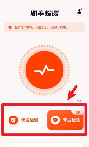 1、打开应用程序,点击主界面上的快速或专业检测按钮,启动相应的心率测量过程。