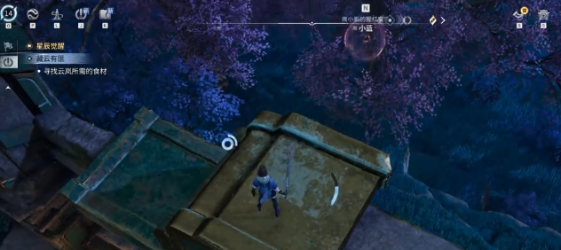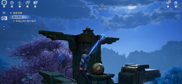 当我们跟随主线剧情推进到青野遗迹,清理完场地内的所有怪物后,可以看到场地的中间有几块石头,而其中有一个是亮着的。大家可能会比较好奇,为什么有一些视频里面的石头四个都是亮的,那是因为玩家早就已经完成了所有的任务。没有解谜的小伙伴们没有必要过于的纠结,玩家可以先站在初始的位置,看到地面上有一些碎片,没有必要去理会。视线转移到左侧,找到第一根可以交互的柱子,靠近之后点击交互键攀爬到柱子上。后找到上面的机关,开始旋转铁球。