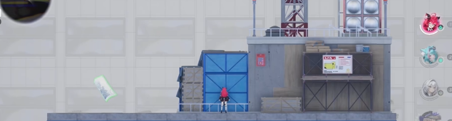 降落到对面平台上之后,马上用蓝色图纸进入平面空间,下一步就是耐心且有节奏地进行操作,先往上跳一格,再用黄色图纸旋转,每一次旋转完之后,再往上跳一格。因此不断地用旋转来改变重力和落点,一步一步地往上爬,最终达到大楼顶峰。