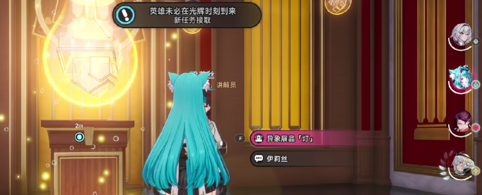 1、接任务:去新赫兰德区的“钨丝展厅”,找金苹果讲解员伊莉丝接任务“英雄未必在光辉时刻到来”。