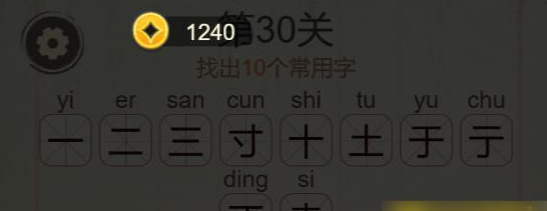 《聪明开局吧》第30关寺找出10个常用字攻略: