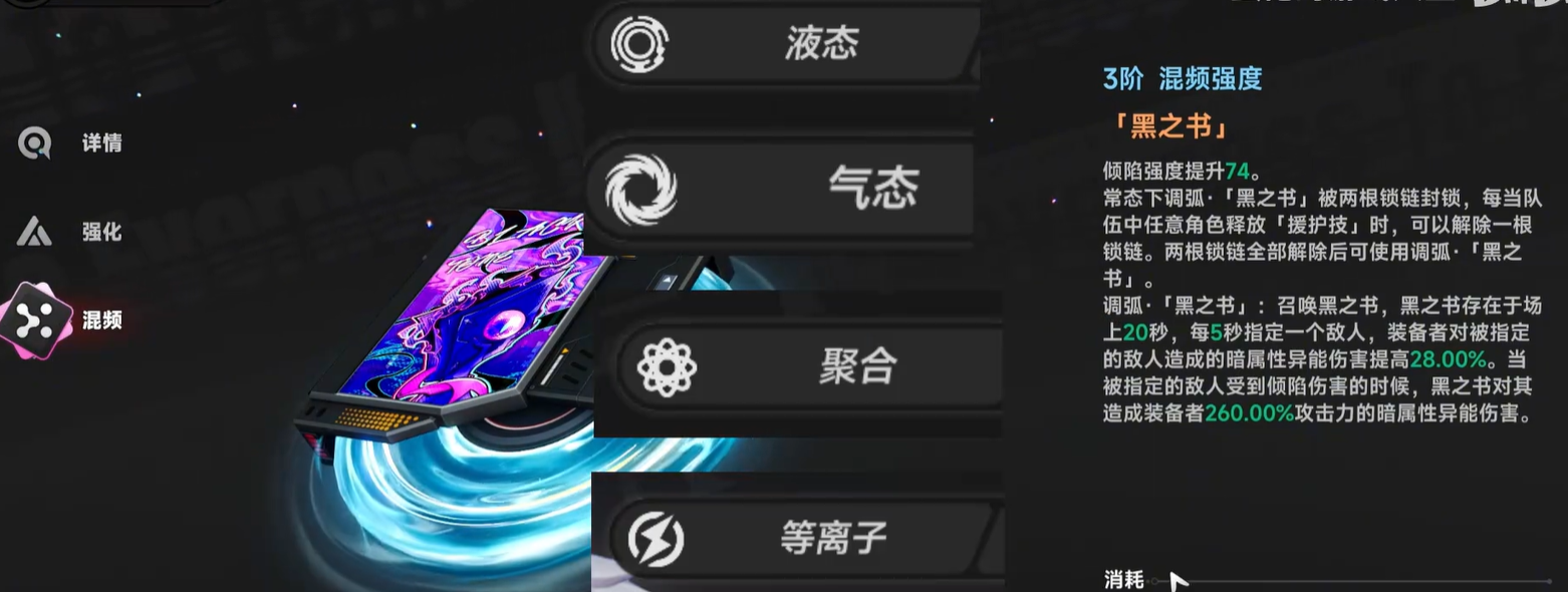在众多的弧盘中,S级弧盘“无首铁驭”的攻击力提高和普攻伤害增加是最佳的选择。基础提高16%攻击力,释放变轨或极轨攻击后,下个20秒内普攻伤害+20%,可叠加2层,非常适合拥有多段普攻技能的队伍。在游戏中某些特殊的情况下会使用备选武器。弧盘“往日之刻”在日蚀状态下会提升24%的攻击力,并且击杀单位可以提高品质,适合持久战。日蚀属于范围爆发技能“噬光回响”,对密集的小怪来说效率很高,适合于爬塔、清怪。