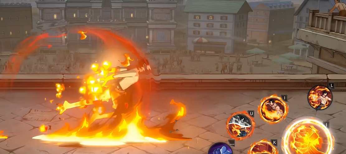 另一被动“烈焰共鸣”聚焦资源管理:使用二技能长按或一技能长按所生成的地面火焰,可通过靠近并激活子技能进行吸收,每吸收一处火焰,不仅减少技能冷却,同时提升子技能充能效率。终极奥义为三段式组合技——首段火焰踢击将目标击飞并驱赶至海域边缘;第二段连续火把甩击将其打入海面;最终以火拳轰击两侧,引发巨型环形火浪完成范围处决。