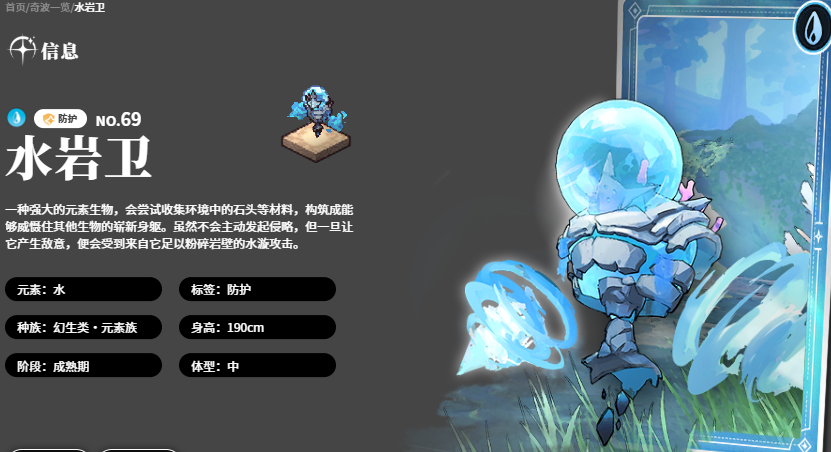而喜欢用水队的成员一般可以选用的是水岩卫,这个水属性奇波可以用的效果里面,通过防护能力带来的功能是比较强大的,而且水岩卫也并不是不能输出,通过水波奔涌此类技能效果,它可以向前方发起冲击,对于目前存在他攻击范围之内的敌人而言,水岩卫每一次的输出都可以造成183%左右的数值,而且可以通过牵引的功能引导敌人的站位,在这里带来的嘲讽功能,也可以让敌人在这里被水岩卫给牵引成功,同时提升了自己21%左右的物理以及魔法防御力提升效果之后,对于自身以及其他搭配的角色而言,还可以带来生命上限的提升,而防御功能的话大家就要注意,一般是后期才会用的出来的,另外水岩卫在前期还可以给我方角色带来攻击能力加成的效果,所以在这里水元素功能当中,水岩卫可以用到的技能是比较多的。