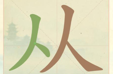1、拆分时可先提取底部横线得到“一”,左右两侧各有一个“人”,组合为“从”;