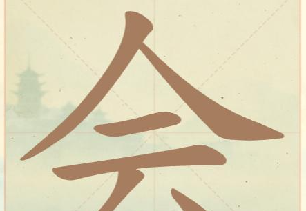 3、上半部分拆出“人”,顶部人字形结构为“亼”(古同“集”),最后上下合体回归本体“会”。