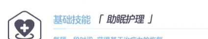 基础技能叫「助眠护理」,每隔一段时间触发一次回复,回复量和治疗力挂钩。这让她有了自己给自己续命的能力,不用全靠队里的治疗角色来补血。对前排来说,这种自持能力,在拉锯战里非常有用,打得越久,价值越能体现出来。