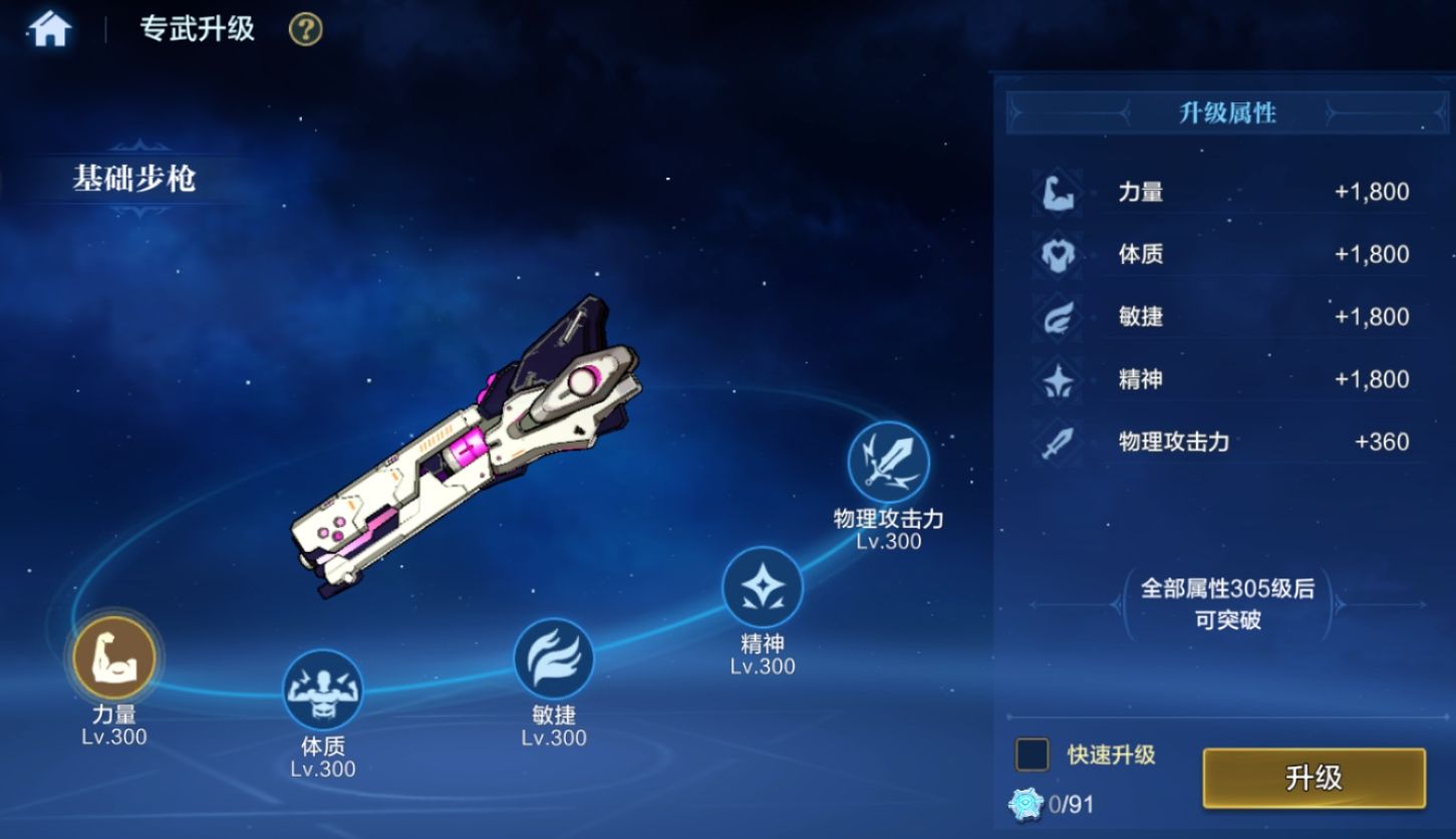 专武可是玩家获取战力的另一大途径,在创建角色后第二天且玩家完成普通1-12的挑战后就能解锁专武。其中,基础专武主要能为角色带来基础属性的提升,而每个角色的三把进阶专武主要带来技能方面的提升,玩家只需升级基础专武或为进阶专武升星,便能得到战力的提升。