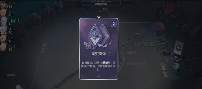 首先让玩家们需要了解的是这个角色的能力,镜的能力战略价值是相当大的,只要了解好其中的逻辑和节奏,能带来的收益非常可观,而镜的一手无穷镜象就是打出节奏的核心,在战斗中玩家们需要消耗能量,生成一张镜像牌,将这张镜像牌打出后会自动变成玩家们上一张使用的角色卡,这一强势点就在于玩家们可以大大降低获取角色的成本,并且加速获取一些比较关键的英雄,加强的技能自然也有着一定的限制,只能和使用时间最近的英雄进行复制,并且不能够从已经生成的镜像再次生成,变成别的英雄,这也让很多玩家们玩的更加开心,因为既有了强度也有了限制,可玩性大大增强。