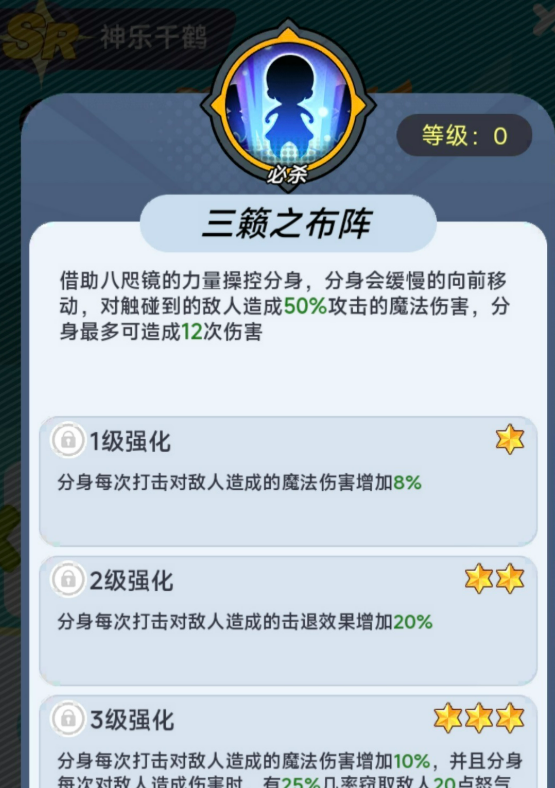 先说说她的必杀技吧,可以召唤出分身,来攻击对手。这个分身会慢慢往前走,碰到敌人,就会造成魔法伤害。听起来好像挺普通的,但是升星之后,就不一样了。分身打人的伤害会变高,而且还能把敌人击退。更主要的是,如果同一个敌人被打中四次,会直接被沉默1.5秒。这个效果在pvp里面特别好用,能打断对方的技能释放。
